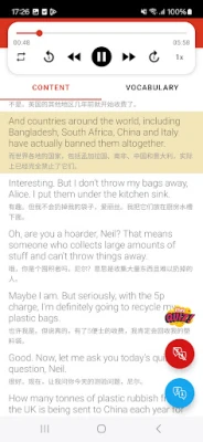 Lai nostiprinātu apgūtās zināšanas, pēc katras nodarbības ir pieejamas interaktīvas viktorīnas, kas palīdz pārbaudīt jūsu izpratni un atmiņu. Turklāt, lai padarītu mācības vēl pieejamākas, "6 Minutes English" nodrošina tūlītēju nodarbību tulkošanu vairākās valodās, tostarp taju, arābu, spāņu, vācu, turku, vjetnamiešu, ķīniešu, japāņu un korejiešu valodā. Ar savu tīro dizainu un intuitīvo saskarni, "6 Minutes English" padara mācīšanos ātru, mērķtiecīgu un patīkamu – ideāli piemērotu jebkura līmeņa audzēkņiem, kuri vēlas efektīvi apgūt angļu valodu. Sāciet savu angļu valodas ceļojumu jau šodien un mācieties gudrāk ar mākslīgā intelekta atbalstu!