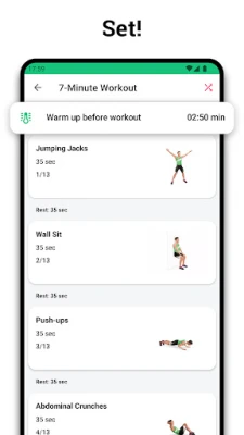 Ar "Daily Workout" veido savu ķermeni tikai 7 minūtēs dienā. Izmanto augstas intensitātes intervālu treniņus (HIIT), lai dedzinātu taukus, tonizētu muskuļus un uzlabotu vielmaiņu. Ideāli piemērots aizņemtiem grafikiem – trenējies jebkurā laikā un vietā bez sporta zāles.