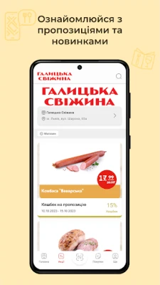 Ar "Галицька Свіжина" jūs iegūstat tūlītēju piekļuvi priekšrocību dārgumu krātuvei. Esiet viens no pirmajiem, kas uzzina par jaunākajām akcijām, sezonas piedāvājumiem un īpašajām atlaidēm, kas ir pielāgotas, lai uzlabotu jūsu iepirkumu sarakstu. Katrs darījums kļūst izdevīgāks, jo jūs bez piepūles krājat naudas atmaksu un vērtīgus bonusus, pārvēršot regulāros pirkumus par iespējām nākotnes ietaupījumiem. Turklāt esiet lieliski informēti par visām jaunākajām norisēm, jaunu produktu pieejamību un aizraujošām ziņām no veikala, nodrošinot, ka nekad nepalaidīsiet garām svarīgu atjauninājumu.