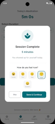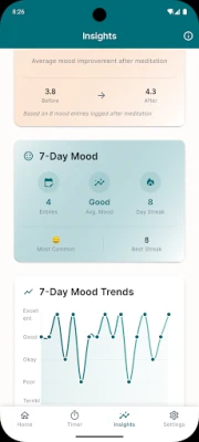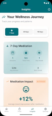 Mindful Minutes spēks slēpjas tās unikālajā spējā parādīt, kā jūsu meditācijas ietekmē jūsu emocionālo stāvokli. Iegūstiet skaidrus datus, piemēram, "Pēc 10 minūšu sesijām jūsu garastāvoklis uzlabojas par 40%", palīdzot jums redzēt reālus modeļus un apzināti augt. Ātri un viegli reģistrējiet savas emocijas, pievienojot piezīmes tikai tad, kad to vēlaties. Lietotnes motivējošā sēriju izsekošana veicina konsekvenci, nevis nevainojamību – jūsu progress saglabājas, pat ja esat izlaidis kādu dienu, nodrošinot atbalstu jūsu ceļā uz labāku pašsajūtu.