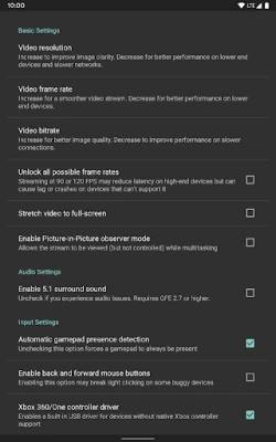 Moonlight piedāvā plašu savietojamību un vadības iespējas, lai nodrošinātu autentisku spēļu pieredzi. Izmantojiet pilnu tastatūras un peles atbalstu (ieteicams ar Android 8.0 vai jaunāku versiju), vai precīzai vadībai izmantojiet irbuli vai S-Pen. Pievienojiet savus iecienītākos kontrolierus, tostarp PS3/4/5, Xbox 360/One/Series un Android spēļu pultis, lai iegūtu vēl patiesāku sajūtu. Turklāt, izmantojot Android 12 vai jaunāku versiju, varat izmantot spēļu pults spēka atgriezenisko saiti un kustības sensorus. Platforma ir saderīga ar gan NVIDIA GeForce Experience, gan atvērtā koda Sunshine resursdatora programmatūru, nodrošinot elastīgas iestatīšanas iespējas jebkuram GPU. Tā atbalsta H.264, HEVC un AV1 kodekus, nodrošinot augstu efektivitāti un attēla kvalitāti, kā arī ļauj rīkot lokālas kooperatīvās sesijas ar līdz pat 16 pievienotiem kontrolieriem.