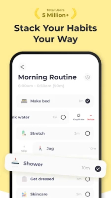 Dzīve ir neparedzama, un jūsu plānotājam jābūt tikpat elastīgam. Viegli apturiet, mainiet secību vai pielāgojiet uzdevumus, kad nepieciešams. Lietotnes inteliģentie paziņojumi, vibrācijas un balss norādes maigi atgriezīs jūs uz ceļa, piedāvājot struktūru bez spiediena. Šis ieradumu veidotājs, kas balstīts uz uzvedības zinātni, samazina atlikšanu un veido noturīgus ieradumus soli pa solim. Aizmirstiet par izsīkumu, kas saistīts ar lēmumu pieņemšanu – vienkārši nospiediet sākuma pogu, un ļaujiet lietotnei vadīt jūs cauri katram solim. Sekojiet savam progresam un vērojiet, kā mazas uzvaras pārtop spēcīgās rutīnās. Pievienojieties miljoniem lietotāju, kas ikdienā veido labākus ieradumus un strukturētāku dzīvi.