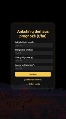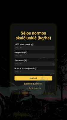 Šī lietotne piedāvā virkni funkciju, kas būtiski atvieglo ikdienas darbu. Precīzi aprēķini par sējas normām tiek veikti, ņemot vērā tūkstoš graudu masu (TGM), dīgtspēju, tīrību un vēlamo augu blīvumu, nodrošinot optimālu sējumu. Viegli pārvaldiet graudu mitruma zudumus, pārrēķinot mitru masu sausā, kā arī precīzi novērtējiet pirkšanas un pārdošanas zaudējumus, ņemot vērā mitrumu, piemaisījumus un cenu, tādējādi nodrošinot taisnīgus darījumus. Plānojiet savu ražu ar detalizētām prognozēm gan labībai (balstoties uz graudu skaitu vārpā, TGM un sējumu blīvumu), gan pākšaugiem (ņemot vērā pākšu un sēklu skaitu). Turklāt lietotne palīdz aprēķināt precīzas mēslošanas līdzekļu (NPK + S) vajadzības, pamatojoties uz plānoto ražu un konkrēto augu sugu, optimizējot resursu izmantošanu.